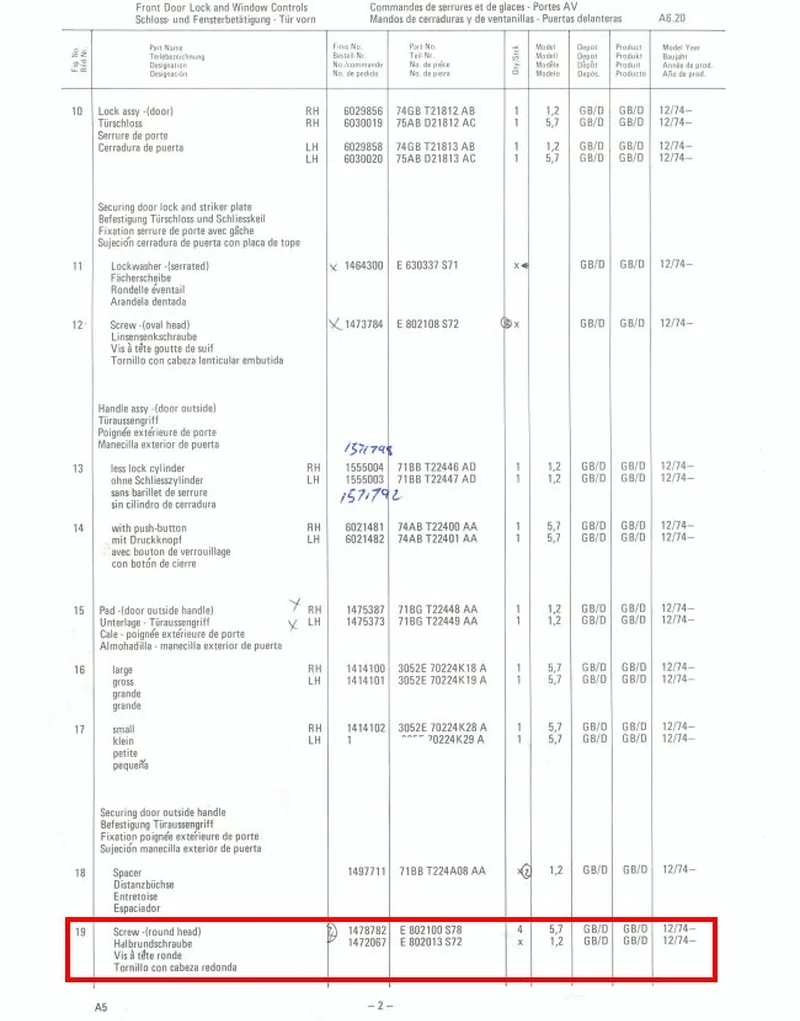As illustrated in the Ford parts catalogue (items highlighted in Red)